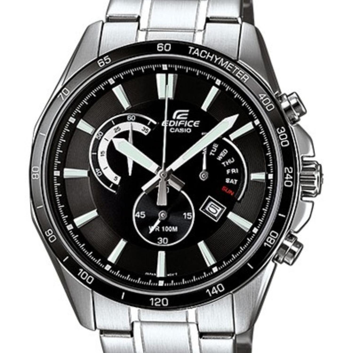 La línea casio edifice combina precisión japonesa, diseño sofisticado y materiales de alta calidad, ofreciendo relojes ideales para quienes buscan elegancia y rendimiento en un mismo accesorio. reconocidos por su durabilidad, precisión y funcionalidad, los relojes edifice son perfectos para adaptarse tanto al uso diario como a ocasiones formales, manteniendo siempre un estilo moderno y profesional. características: -género: hombre -tipo de maquinaria: cuarzo análogo-cronógrafo -diámetro: 45 mm -material de la caja: acero inoxidable -color de la caja: plateado -cristal: mineral -corona: tradicional de ajuste + pulsadores -resistencia al agua: 100 m (10 bar) -tipo de bisel: fijo -color del bisel: negro -color de la esfera/display: negro -material de la correa: acero inoxidable -color de la correa: plateado -luminova: manecillas y marcadores luminiscentes