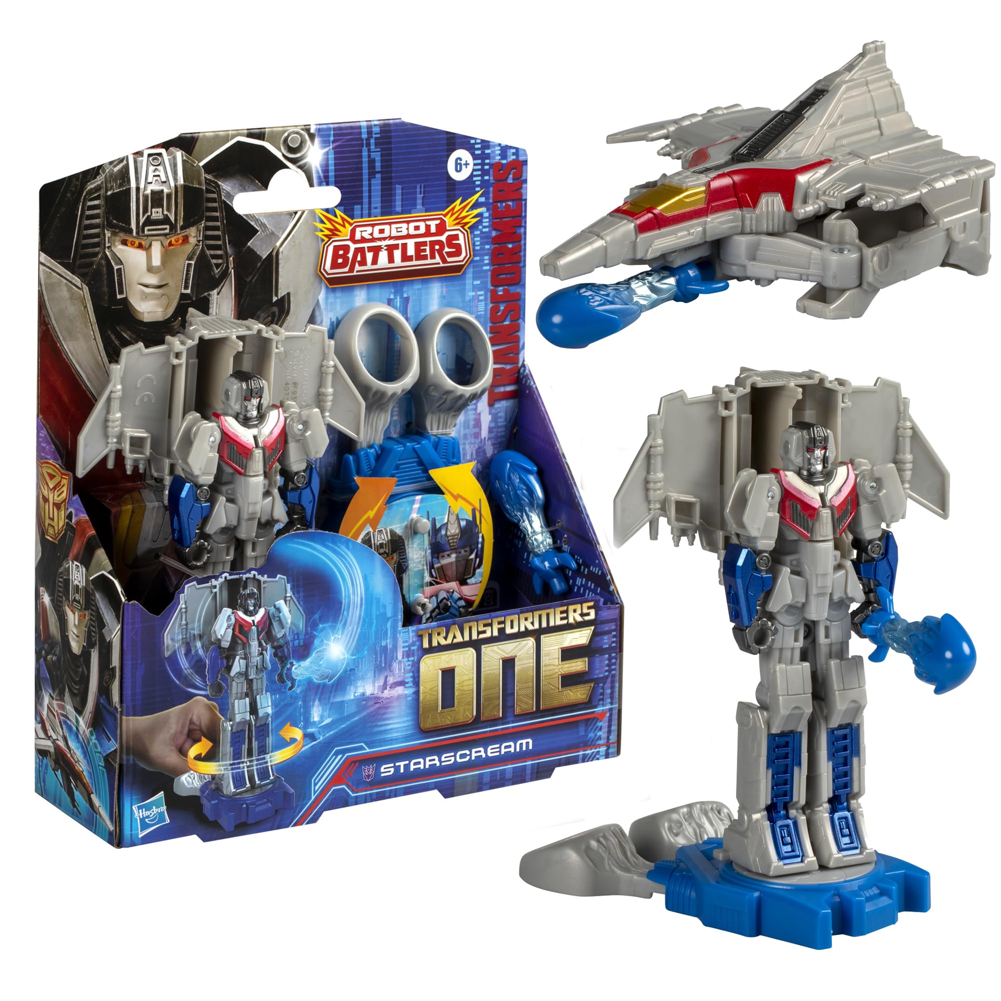 Transformers one robot battlers starscream, figura de acción de robot de 4.5 pulgadas, juguetes interactivos para niños y niñas a partir de 6 años - juguete transformador 2 en 1 inspirado en la película: inspirada en la película transformers one, esta figura de acción robot battlers starscream se convierte de robot a modo alt para un impresionante juego 2 en 1 - acción de batalla: desliza las ranuras de los dedos en la base de batalla para crear movimientos de batalla geniales. lucha contra otra figura de robot battlers y quien derriba una figura de la base gana. (las figuras se venden por separado, sujeto a disponibilidad). - conversión simple: esta figura de transformers puede cambiar de un robot de juguete a un juguete de jet cybertronian en 4 pasos. la conversión es lo suficientemente simple para que los niños lo hagan ellos mismos - articulado para juego y exposición: esta figura de tansformers de 4.5 pulgadas (4.5 in) de altura cuenta con cabeza, brazos y piernas articulados para posturas de acción - accesorios impresionantes: la figura de acción viene con una base de batalla e incluye una espada energon power que se fija en modo robot - transformers figuras de acción para niños y niñas de 6 años en adelante: las figuras de película de transformers son un gran regalo para niños y niñas que aman los juguetes robot - personajes icónicos de la película de transformers: busca más juguetes de transformers (cada uno se vende por separado, sujeto a disponibilidad) para construir tu colección