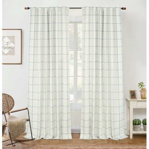 Cortinas Driftaway 100% Opacas De Lino A Cuadros Para Ventanas, 2 Unidades