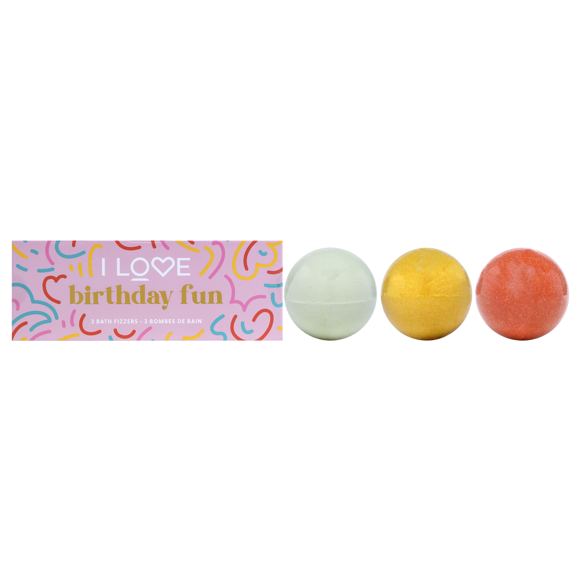 Nuestro paquete de diversión de cumpleaños de i love es el regalo perfecto para cualquier persona. con fizzers divertidos y fragantes, la diversión de cumpleaños está destinada a tenerlos zumbando para entrar en su próximo baño burbujeante. dejar enfriar en agua tibia. enjuague el baño después de su uso. esto no es comida. solo para uso externo. si se produce irritación interrumpa el uso y si es necesario consulte a un profesional médico.