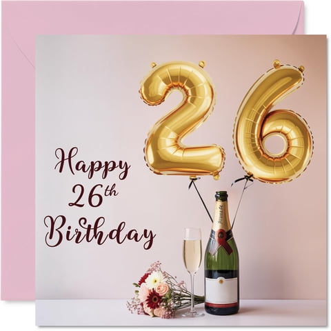 Tarjeta De Cumpleaños Stuff4 Globos Y Burbujas Para 26 Cumpleaños, 14,5 Cm