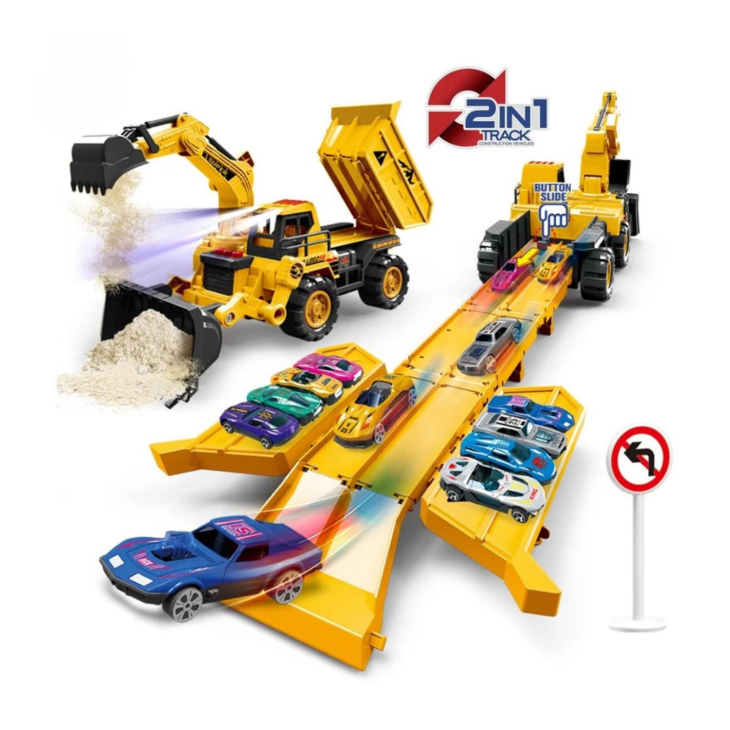 Fliperex - Retroexcavadora Porta Autitos 2 En 1 Rampa Pista Lanzamiento | Lider Electrohogar