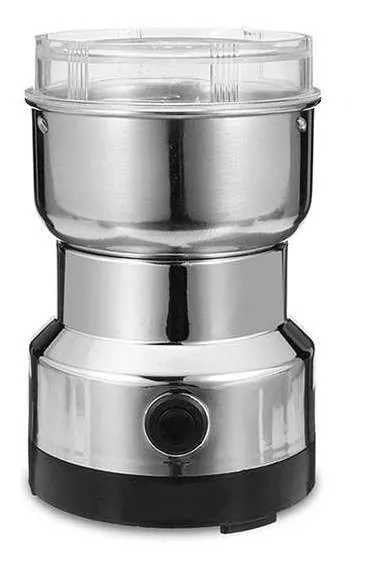 Moledor molinillo electrico de cafe granos y semillas color gris este moledor eléctrico es una herramienta segura para moler café y semillas. su funcionamiento se basa en un control de interruptor de botón que permite ajustar el grosor del molido según el tiempo que se pulse. tiene la capacidad de moler hasta 100 gramos en una sola vez. características: - apto para moler granos de café y semillas de aliños. - durabilidad garantizada con un exterior completamente de acero inoxidable. - diseño elegante en color gris. - funciona con una potencia de ac 220-240v. - motor de 150w de potencia.