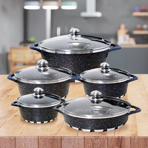 Juego De Ollas Cocina 10 Piezas Granito Negro Antiadherente Bfresh