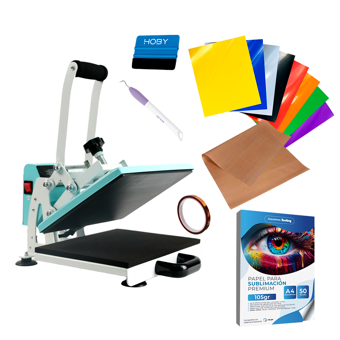 Kit Plancha Estampadora Celeste 23X30Cm Sublipress Para Dtf + Insumos De Inicio | Lider Electrohogar
