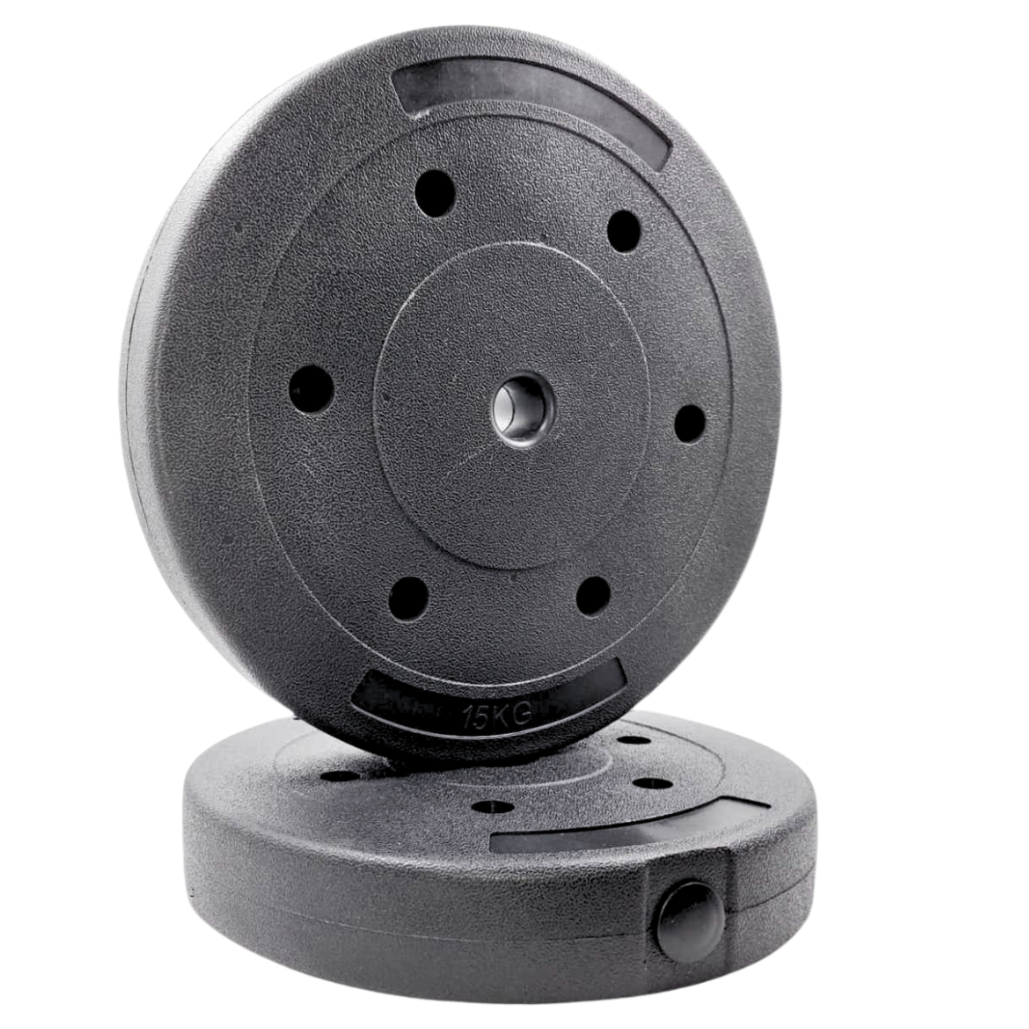 Par de discos preolímpicos pvc de 15 kg c/u, total 30 kg de cemento revestido
