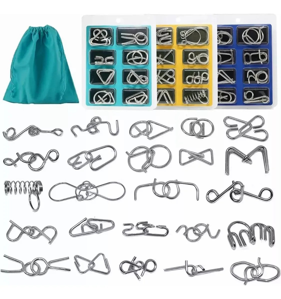 Este juego de ingenio incluye 24 rompecabezas de metal diseñados para desafiar la mente y desarrollar habilidades de resolución de problemas. cada pieza ofrece un reto único que pone a prueba la lógica y la creatividad, siendo una excelente forma de entretenerse y aprender al mismo tiempo.