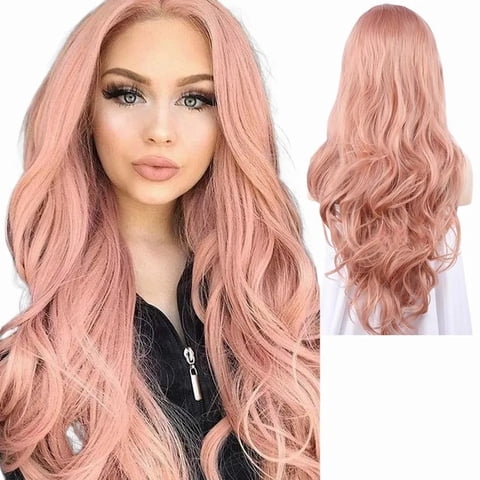 Genérica - Peluca Rosa Cabello Flequillo Largo Ondulado 65Cm + Red De Peluca | Lider Electrohogar