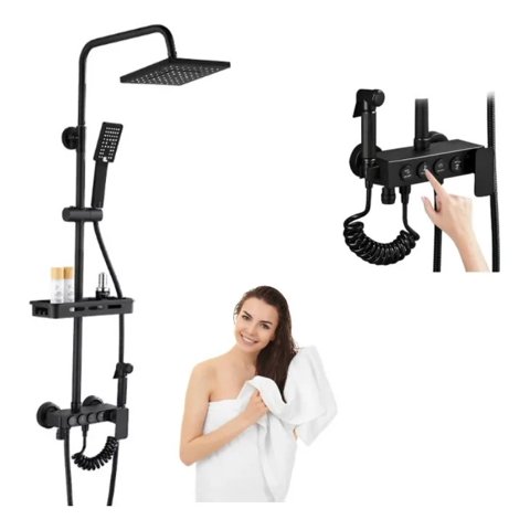 Click Ventas - Columna Ducha 4 Funciones Cuadrada Con Repisa Bidet Negro