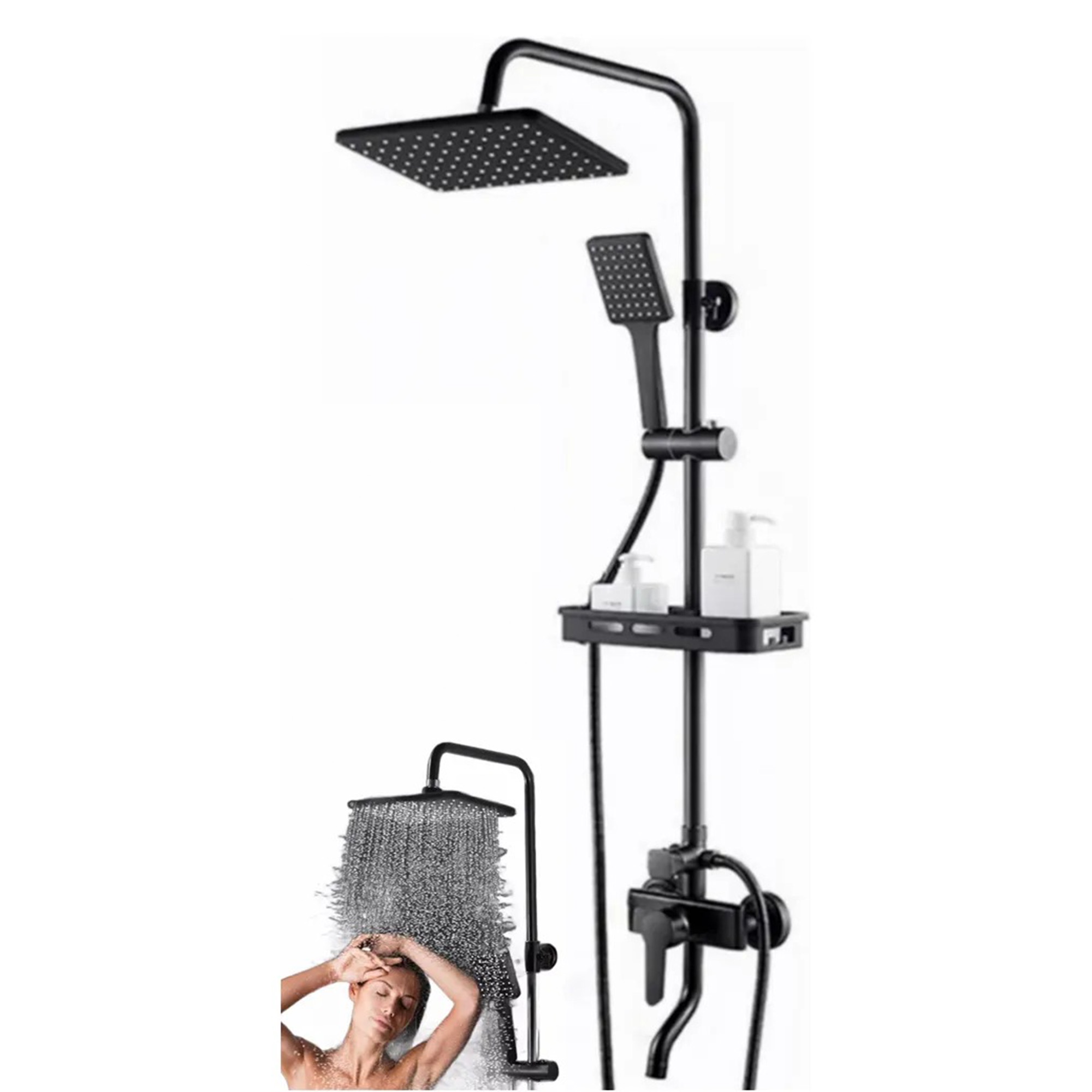 Click Ventas - Columna Ducha 3 Funciones Cuadrada Con Repisa Moderna Negro