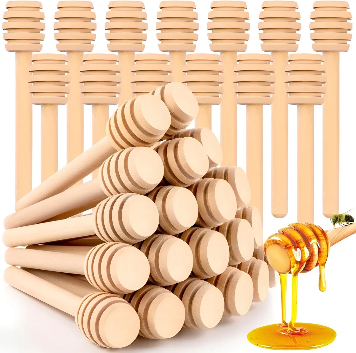 Palitos de miel multiusos: perfectos para rociar miel, mermelada, jarabe de arce, jarabe oscuro, chocolate derretido, caramelo, embutidos, manzanas cubiertas de chocolate o cualquier líquido pegajoso. también es ideal para envolver su propia miel casera, recuerdos de bodas y fiestas, recuerdos de baby shower o cualquier proyecto artesanal.