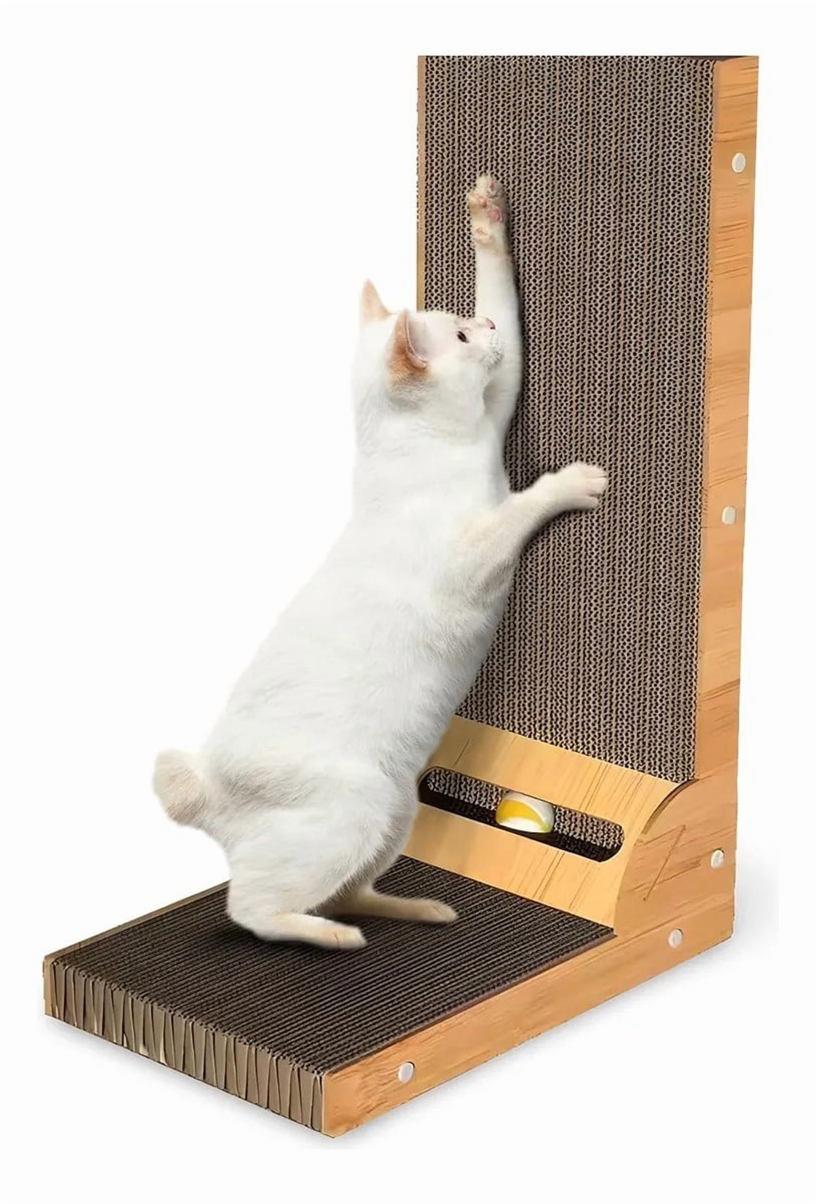 Adecuado para todos los gatos: la tabla de rascar para gatos, está diseñada para gatos de gran tamaño y gatitos jóvenes. viene con una atractiva bola de juguete para mejorar el tiempo de juego y la estimulación, impregnada de zacate gatera irresistible para cautivar a tu amigo felino.