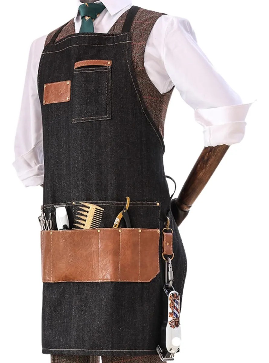 Este delantal premium para barbero está diseñado para ofrecer comodidad y funcionalidad en cada sesión de trabajo. con un diseño resistente y duradero, es ideal para proteger la ropa de los estilistas mientras trabajan. la pechera ajustable y los múltiples bolsillos permiten mantener herramientas esenciales a mano, facilitando el trabajo diario en barberías y salones.