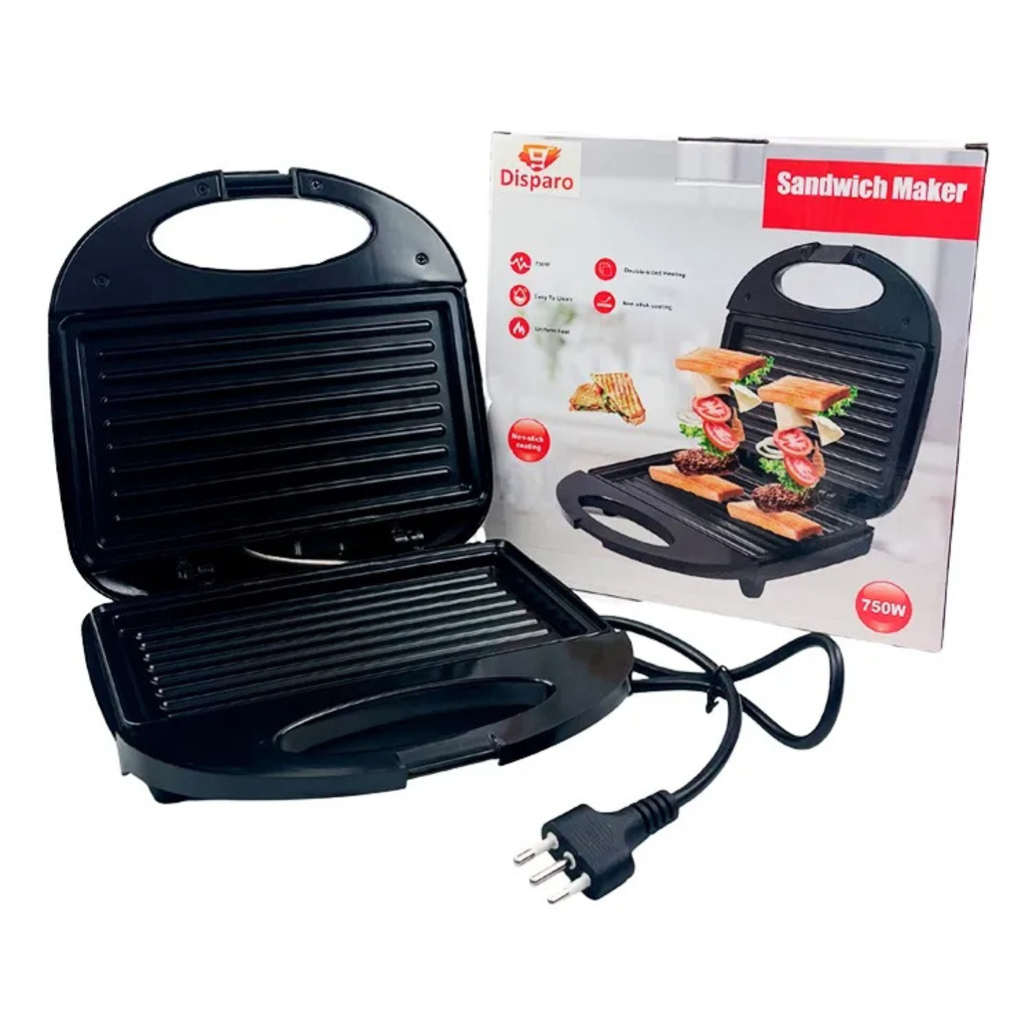 Sandwichera multiuso tostadora sanduchera 750w negro