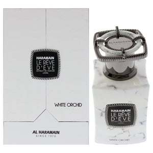 Le reve deve white orchid de al haramain es un extrait de parfum para mujer que ofrece una mezcla equilibrada de aromas florales, frutales y especiados. su composición incluye trufa, gardenia, orquídea, especias, notas frutales, ylang-ylang, jazmín, loto, grosella negra, bergamota, naranja mandarina y limón amalfi, creando una experiencia olfativa compleja y elegante. ideal para quienes buscan un perfume con presencia y carácter para uso diario o eventos especiales. características técnicas clave: - tipo: extrait de parfum - contenido: 100ml (equivalente a 3.33 oz) - notas principales: orquídea, gardenia, jazmín, ylang-ylang, cítricos - género: mujer