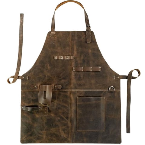 Xusx111 - Deldelal Rústico Con Grandes Bolsillos Y Correas Ajustables, Cuero De Grano Completo, Delantal De Cuero Hecho A Mano, Delantal De Trabajo Resistente Al Calor Y A La Llama | Lider Electrohogar