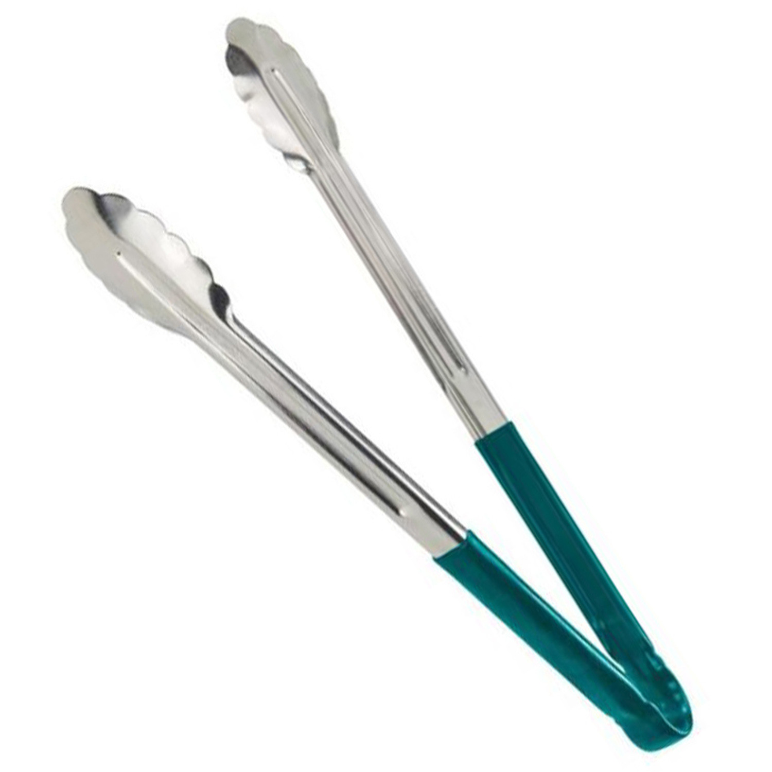Pinzas de servicio gruesa con mango de plástico. solo para comida fría. código de colores para ayudar a prevenir el contacto cruzado en áreas de cocina o buffet. acero inoxidable. largo: 40 cm. mango color verde