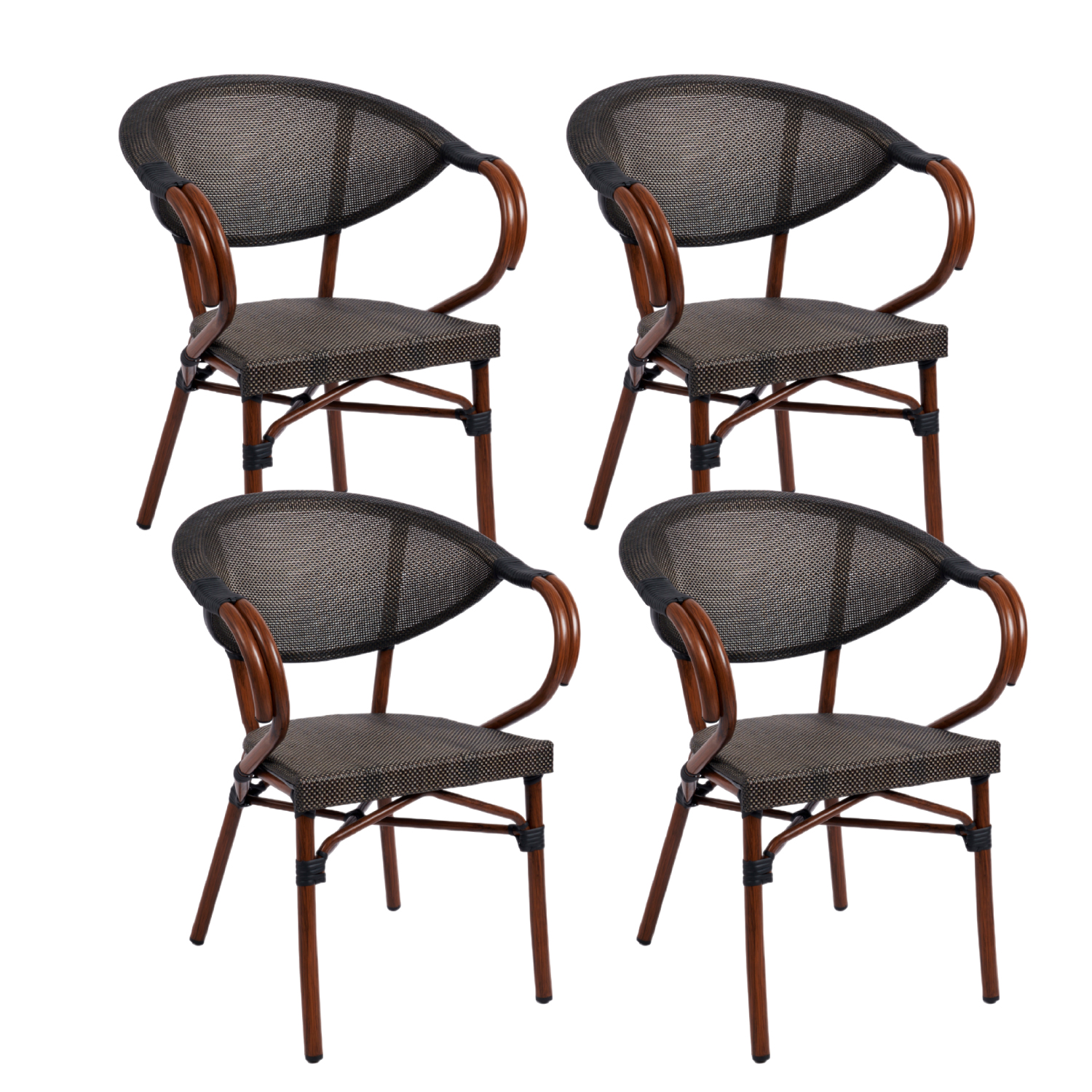 Pack de 4 Sillas Bistro Parisina Textileno con reposabrazos - Café Oscuro