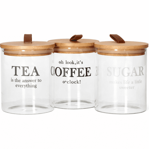 Danny Home - Set 3 Frascos Vidrio Té Café Azúcar Tapa Madera Multicolor