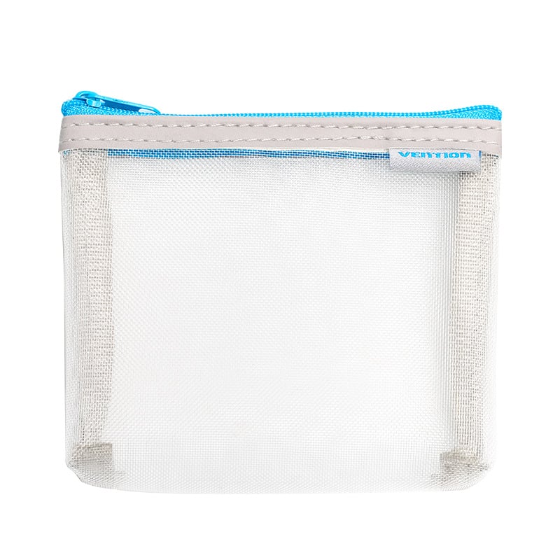 La bolsa está hecha de nailon liviano y duradero, con un diseño transpirable y semitransparente que permite ver su contenido fácilmente. está asegurada con una cremallera para evitar que se caiga nada, y tiene un tamaño compacto de 10x12 cm, lo que la hace perfecta para llevar pequeños objetos de manera segura y cómoda.
