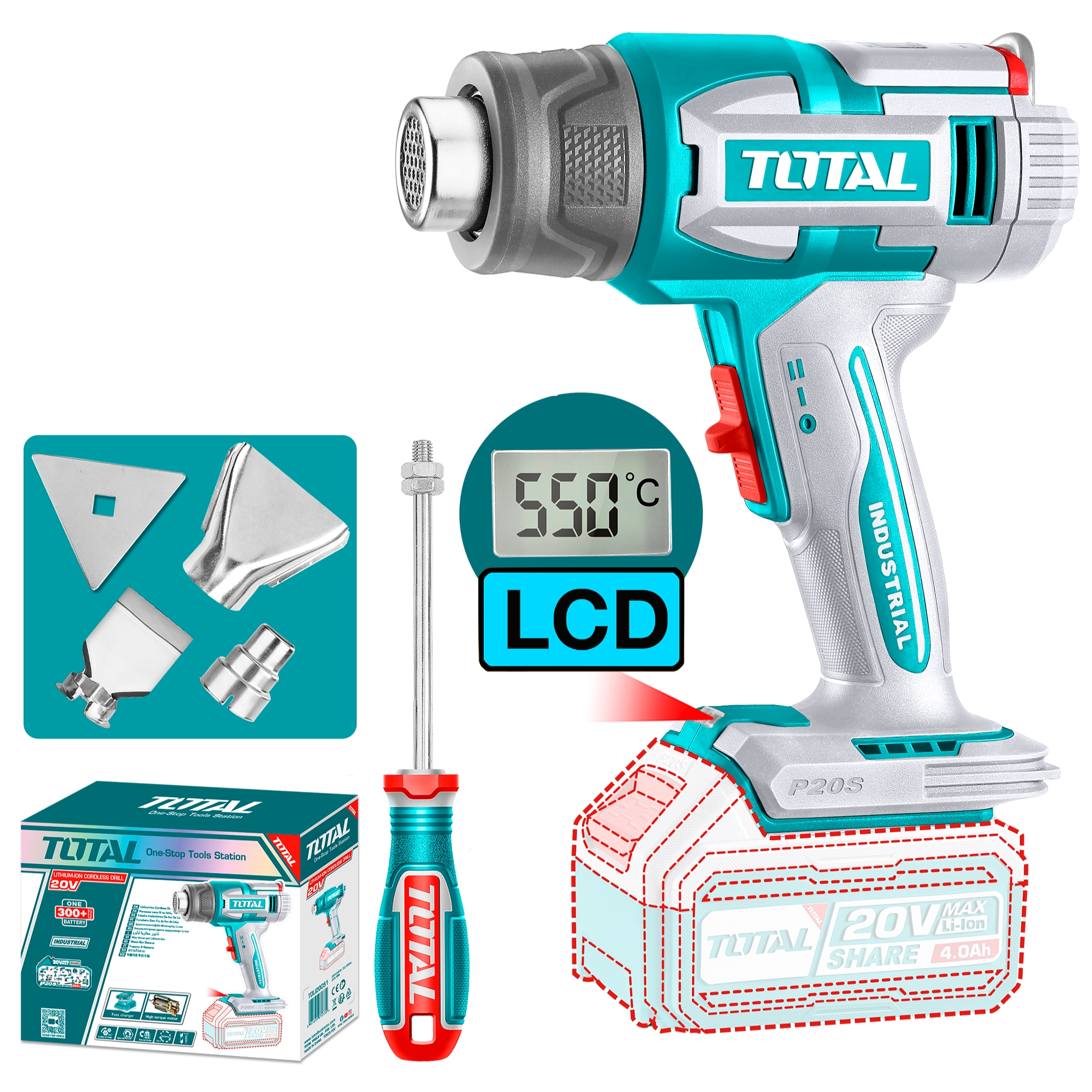 Pistola De Calor Inalambrica Digital 20V, Batería Y Cargador Total