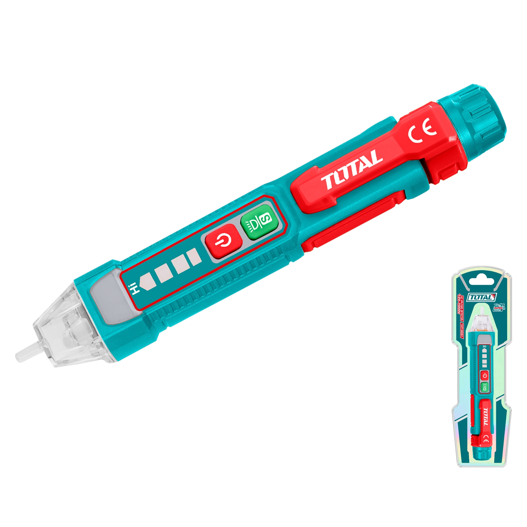 Detector de voltaje ac 12-1000v con alarma sonora y luz led, batería baja e apagado automático. incluye 2 pilas aaa. empaquetado en caja de color.