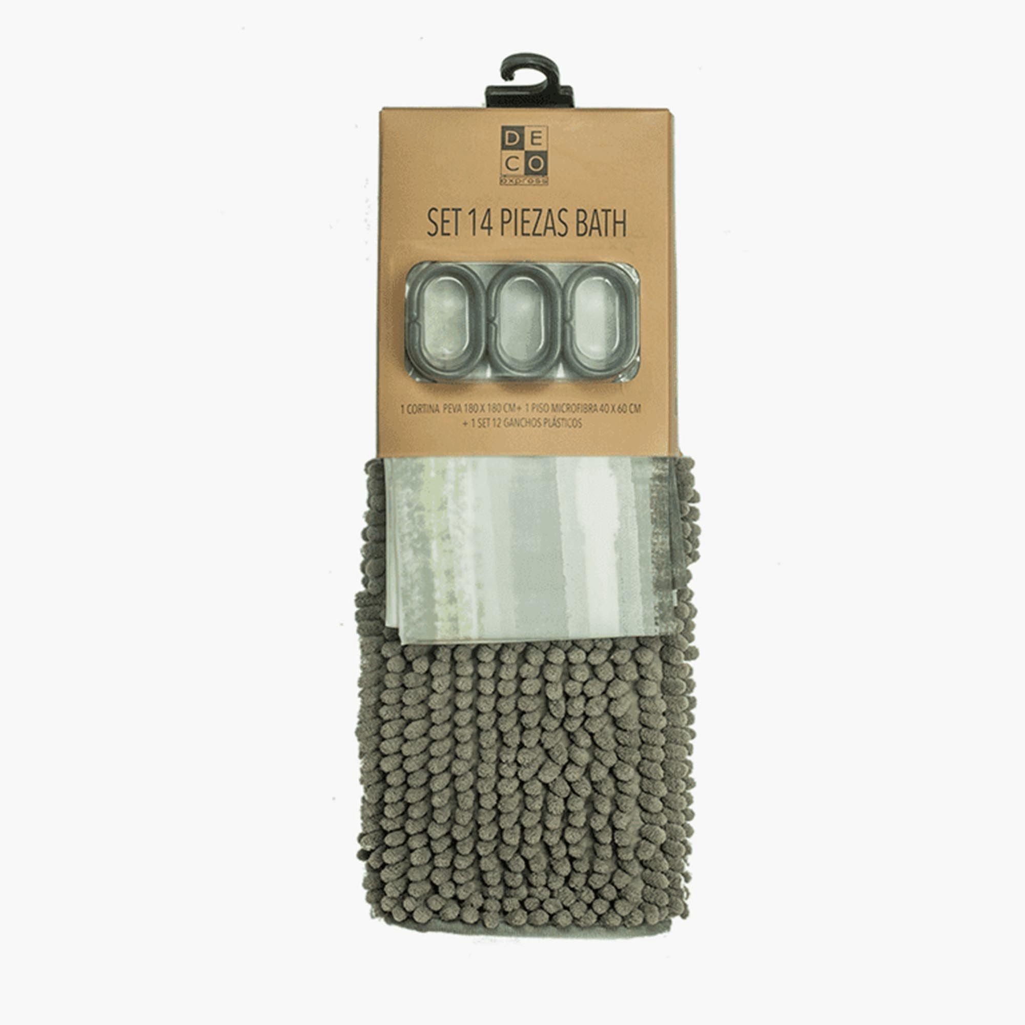 Decoexpress - Set De Baño Jade (Cortina, Ganchos, Toalla Y Vaso/Dispensador)