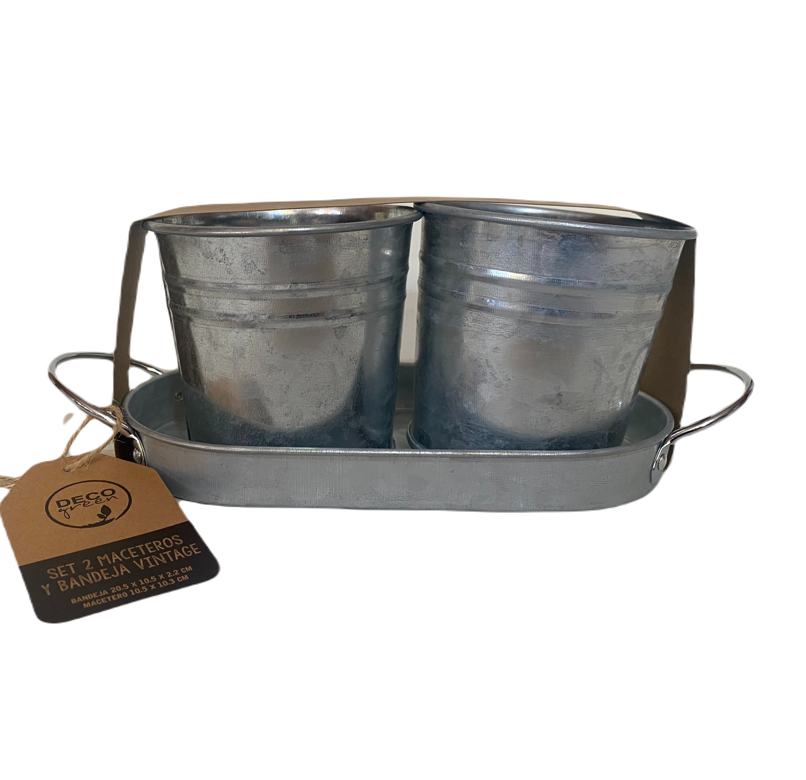 Decogreen - Set 2 Maceteros Y Bandeja Vintage | Lider Electrohogar
