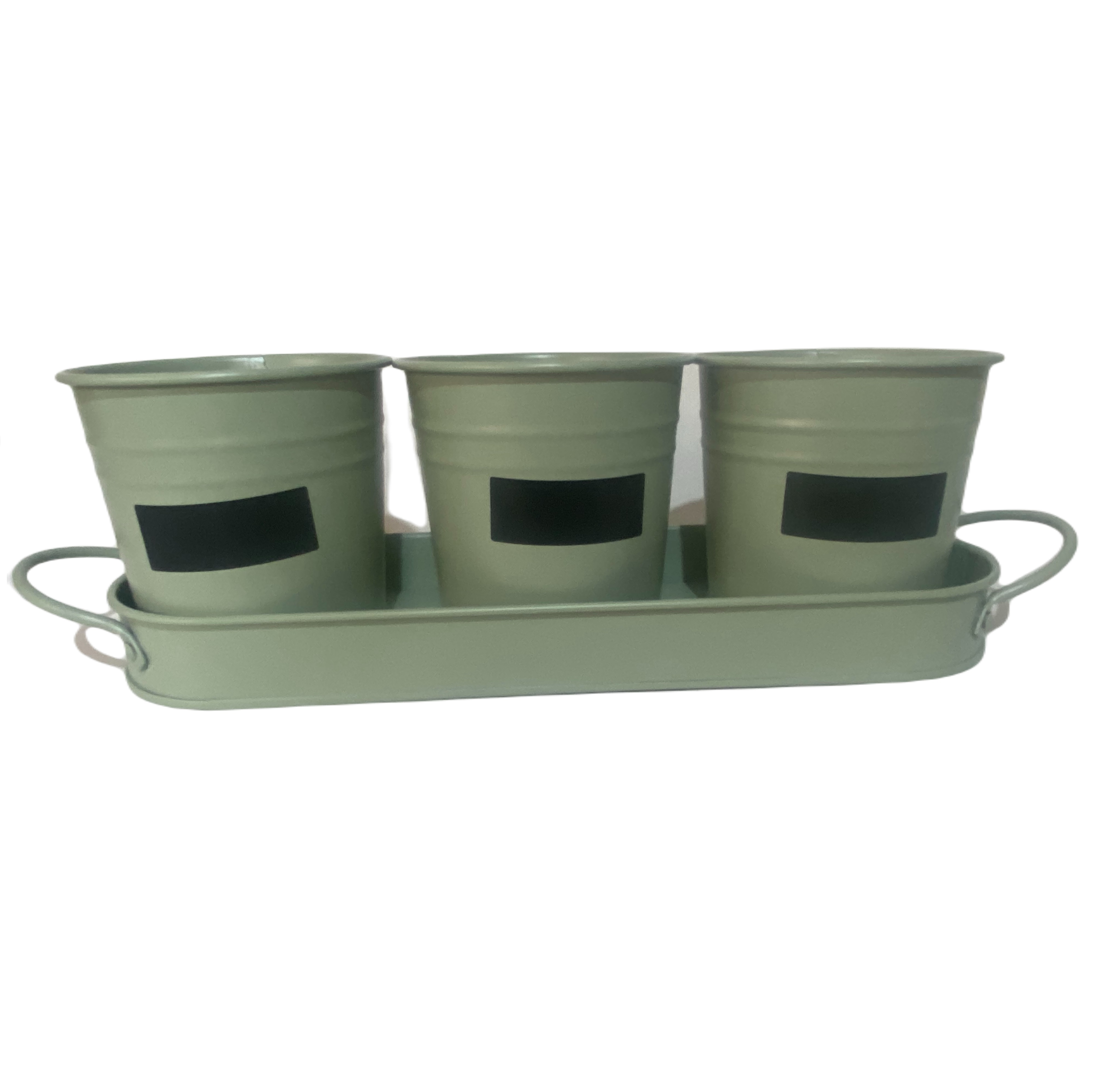Set 3 maceteros pizarra + bandeja verde