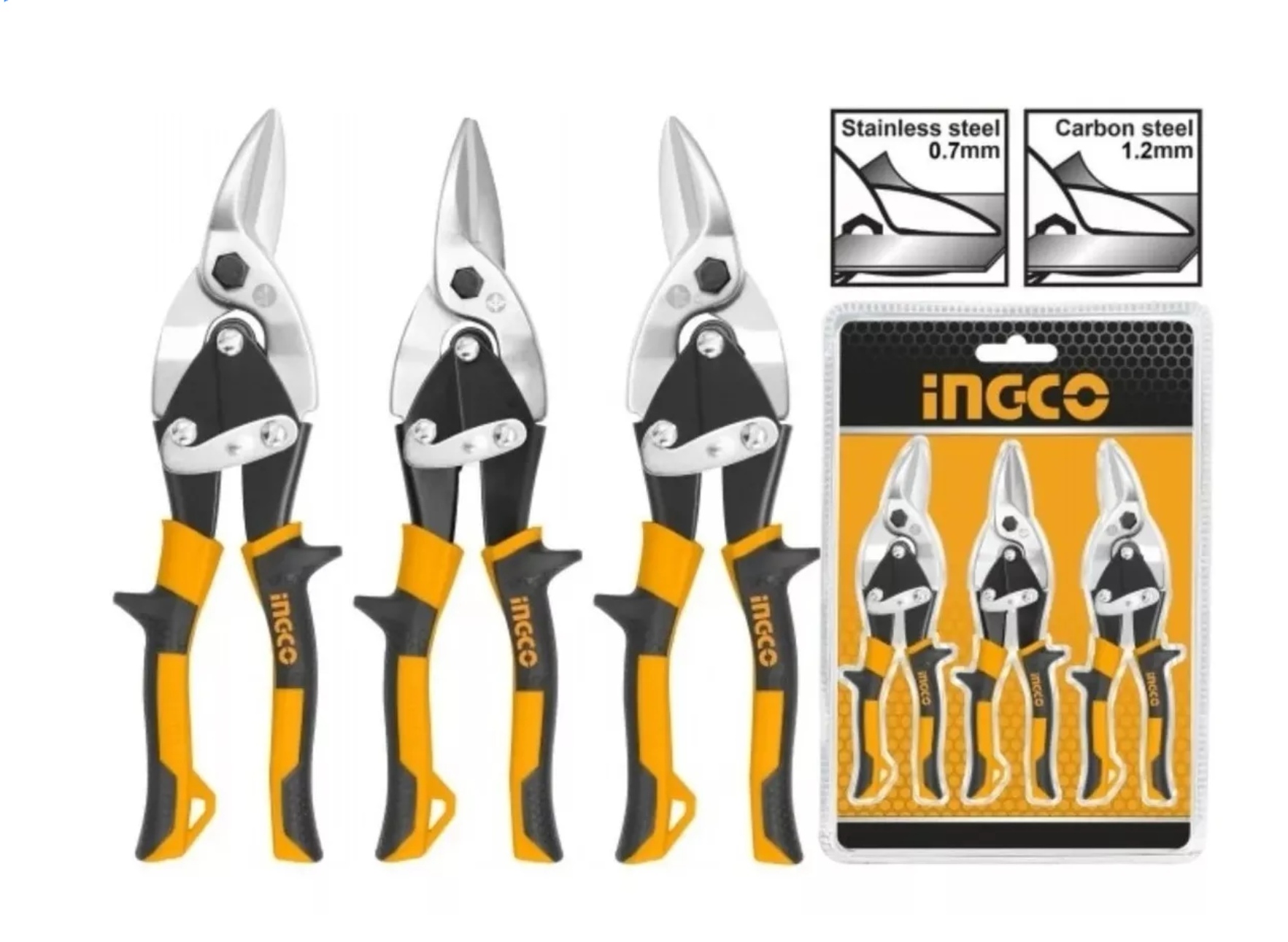 Set pack de 3 tijeras aviación hojalateras ingco de 10 pulga
