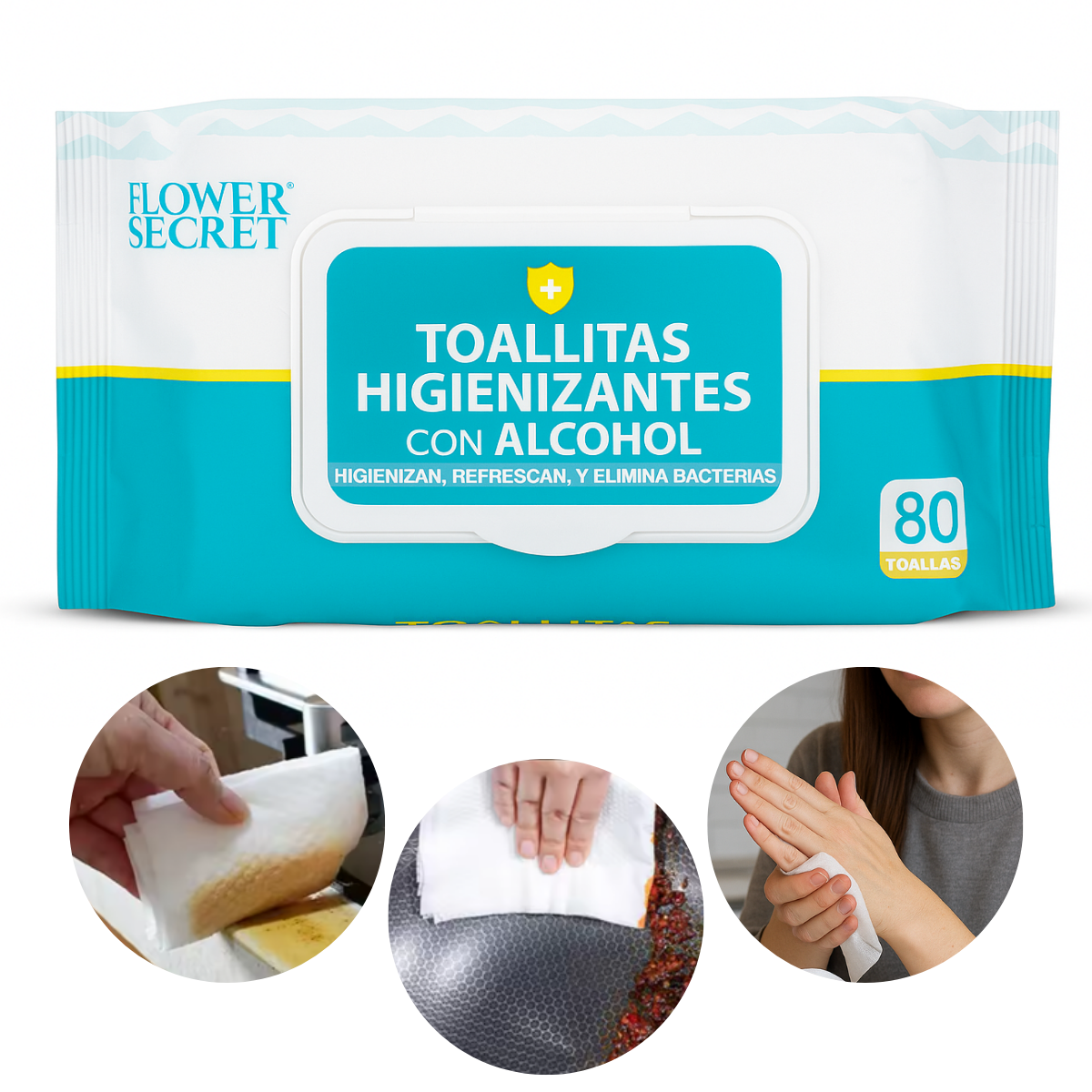 Flower Secret - Pack 240 Toallas Húmedas Higiénicas Con Alcohol Multiuso | Lider Electrohogar