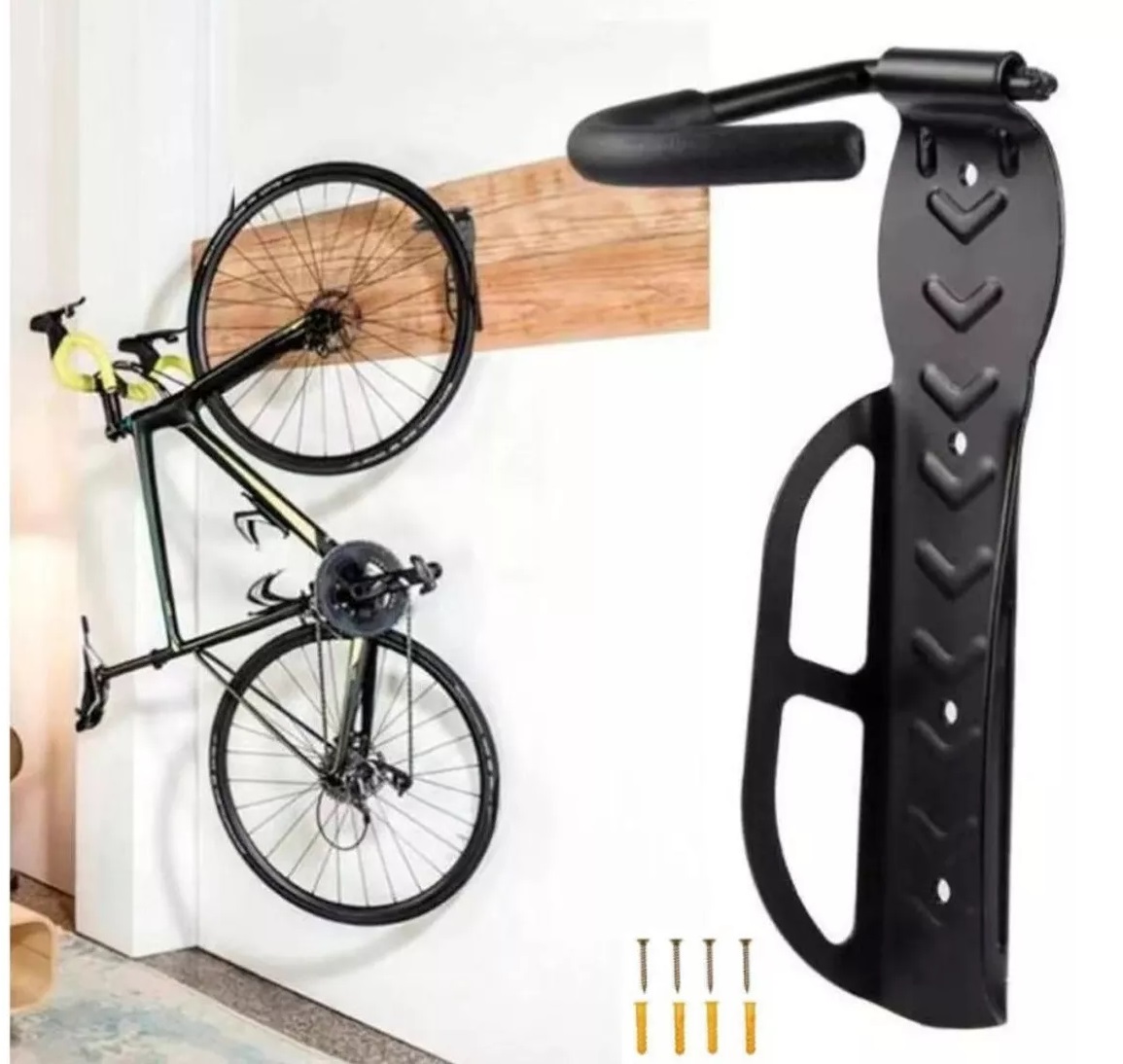 Contenido del paquete: - 1 portabicicletas - cuatro casquillos para fijar a la pared; - cuatro tornillos