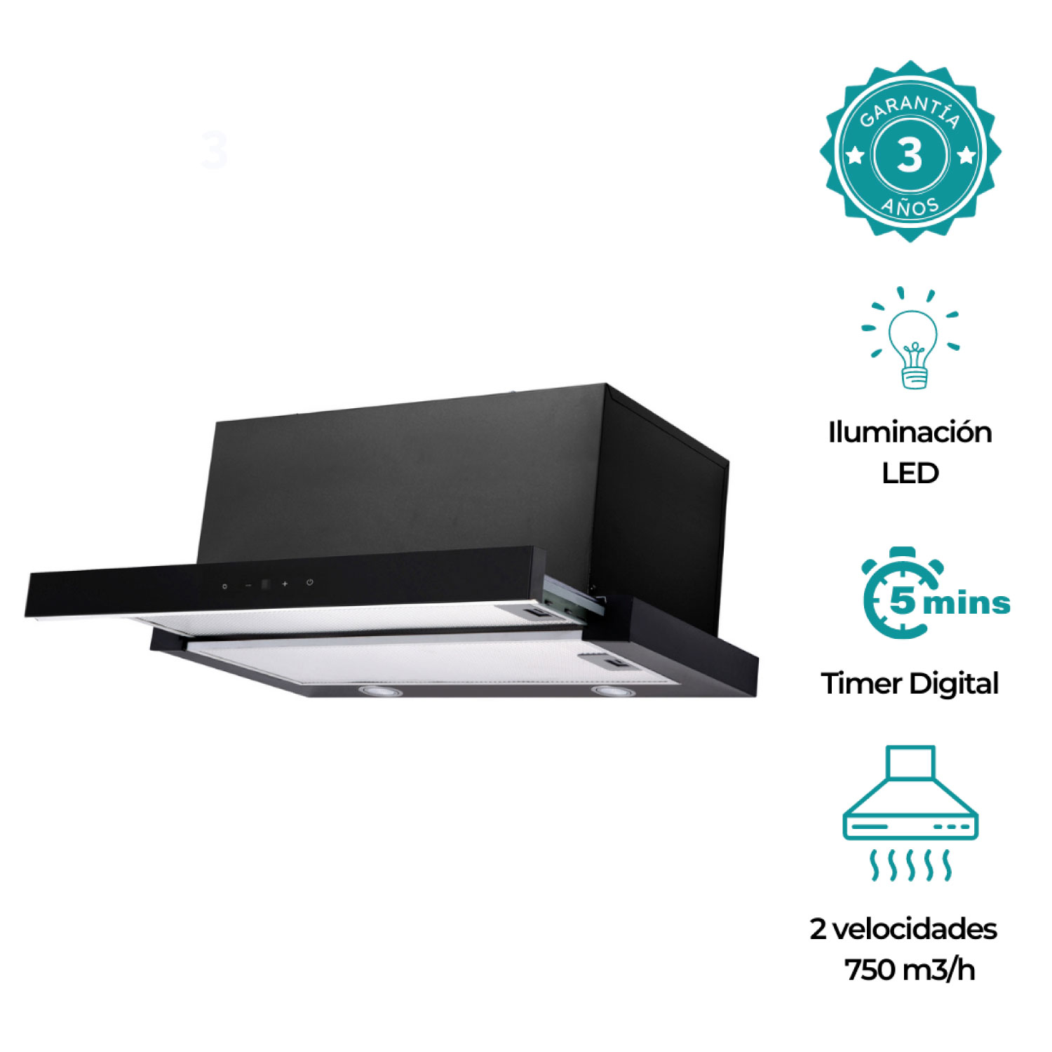 Groner - Campana Telescópica Black Digital 60Cm