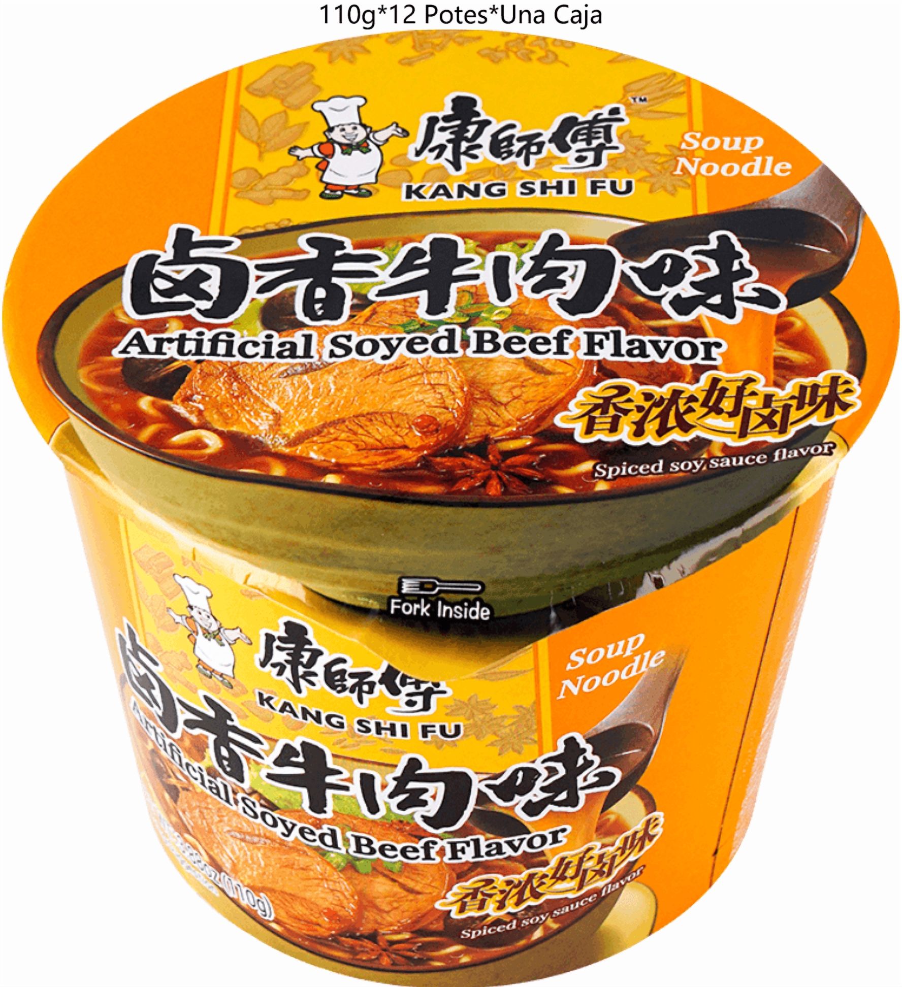 Fideo instantaneo - sopa de fideo kang shi fu, sabor artificial carne especiada a soja 110g*12 potes (una caja contiene 12 potes).