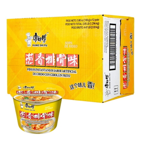 Fideo Instantaneo Kang Shi Fu Sabor Artificial De Cerdo Con Cebollín Frito 108G*12 Potes | Lider Electrohogar