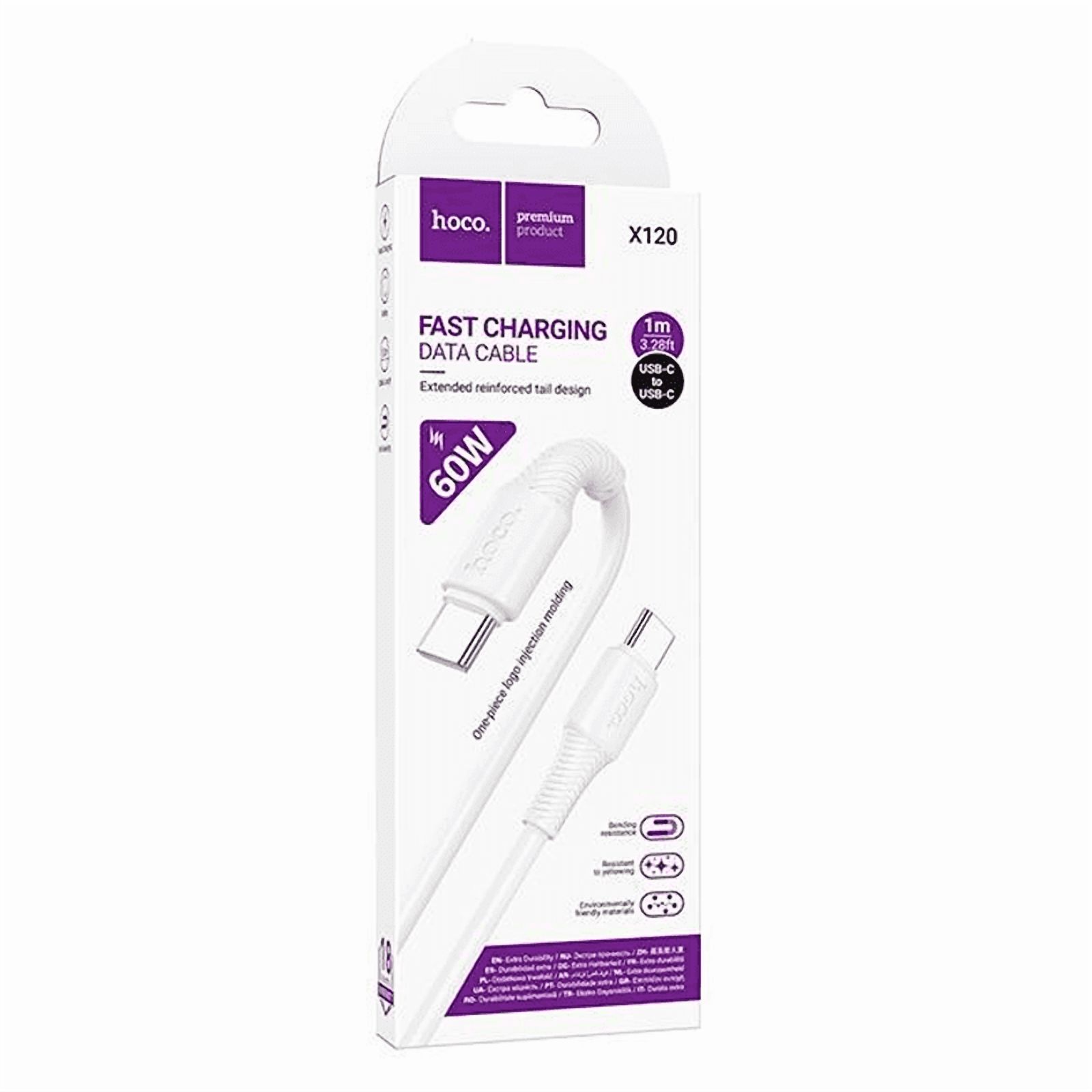 Cable carga rápida 60w usb-c a usb-c hoco x120. ideal para notebooks, macbooks y celulares. largo 1 metro.