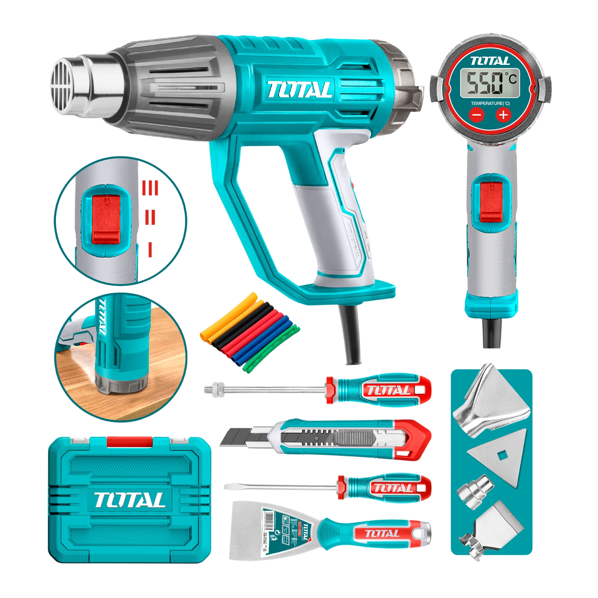 Pistola De Calor 2000W Con Pantalla Digital Lcd Con Accesorios Total | Lider Electrohogar