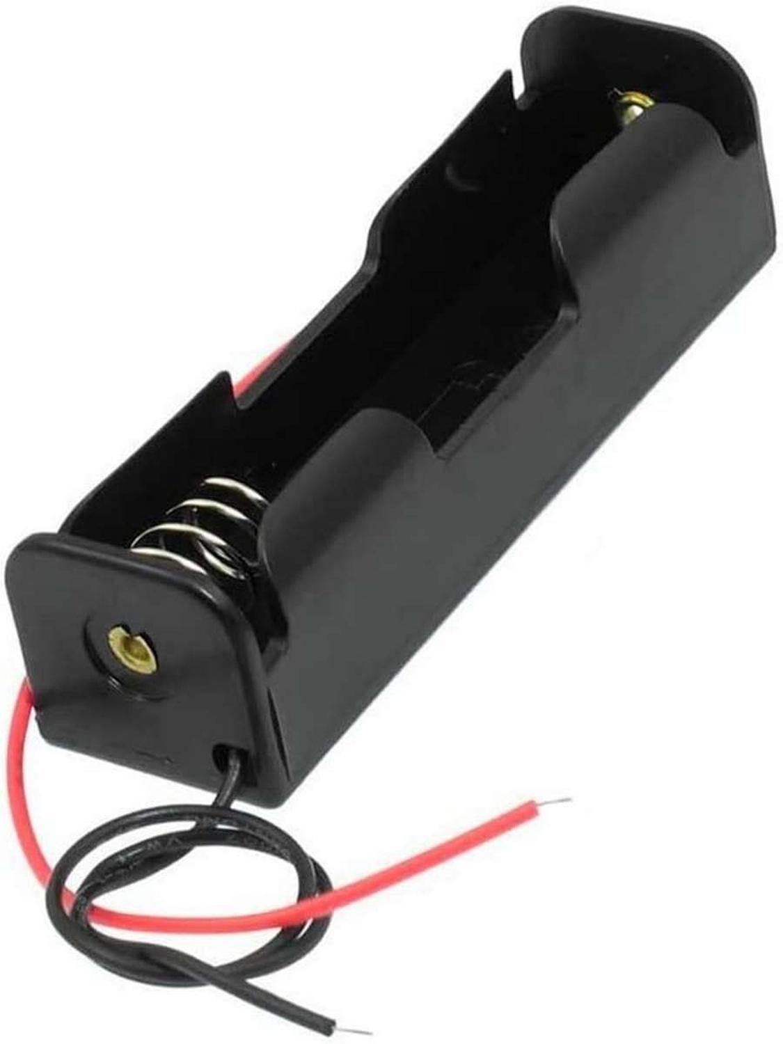 Caja porta pilas doble para baterias 18650. la batería se fija mediante un resorte de acero inoxidable. equipado con 2 cables de diferente color para una clara distinción esta hecho de material resistente, de alta resistencia, baja resistencia en general y puede reducir eficazmente el desperdicio de energía. ideal para proyectos pequeños o de espacio reducido, tales como bricolaje electrónico, fuente de alimentación de iluminación led y mucho mas. incluye cables preinstalados para soldar a cualquier tipo de conector, facilitando su uso en una variedad de aplicaciones electrónicas. caracteristicas - porta pila para batería de tipo 18650 3.7v (no incluye pilas) - incluye cables de conexionado positivo y negativo. - facil instalacion paquete incluye - 1x porta bateria