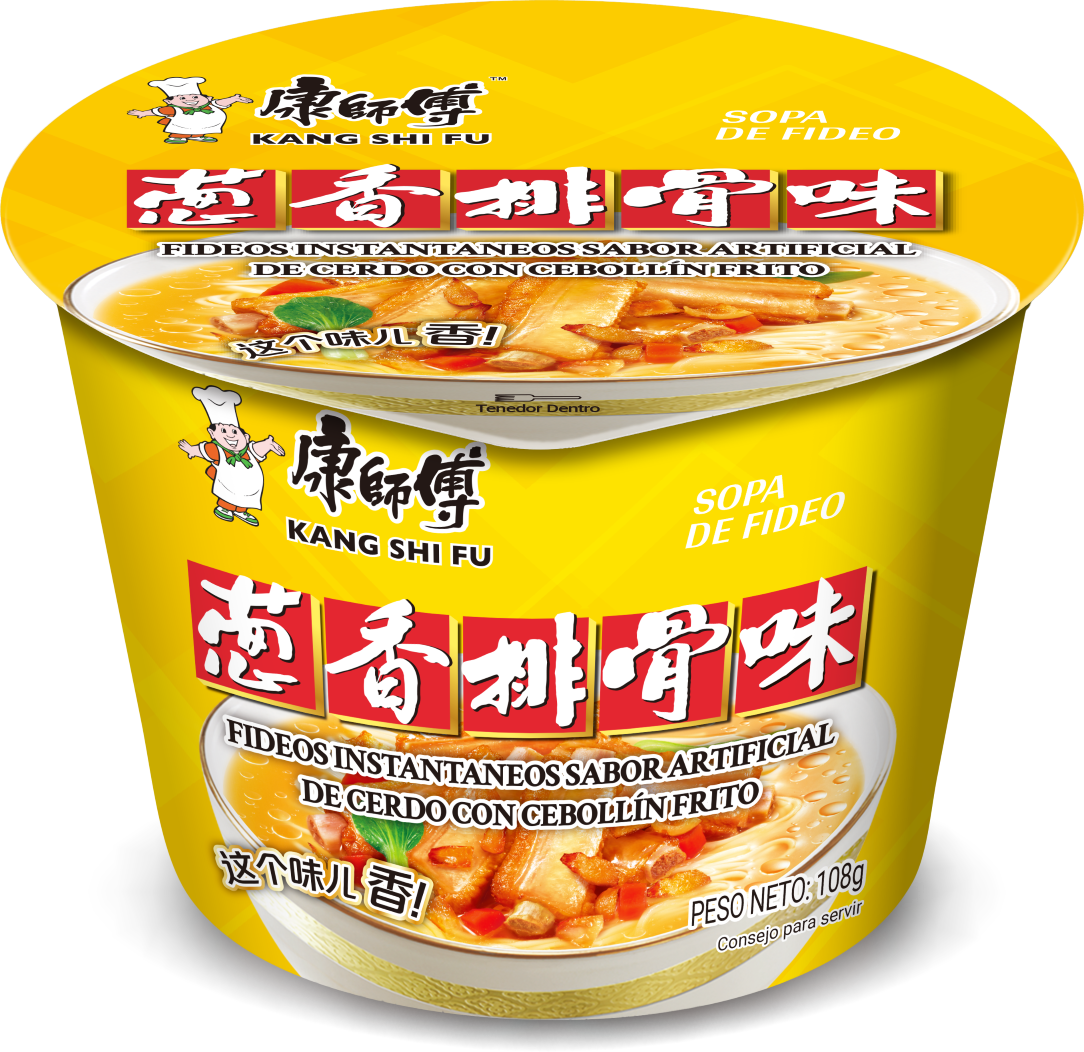 Fideo instantaneo - sopa de fideo kang shi fu, sabor artificial de cerdo con cebollín frito 108g*pote.