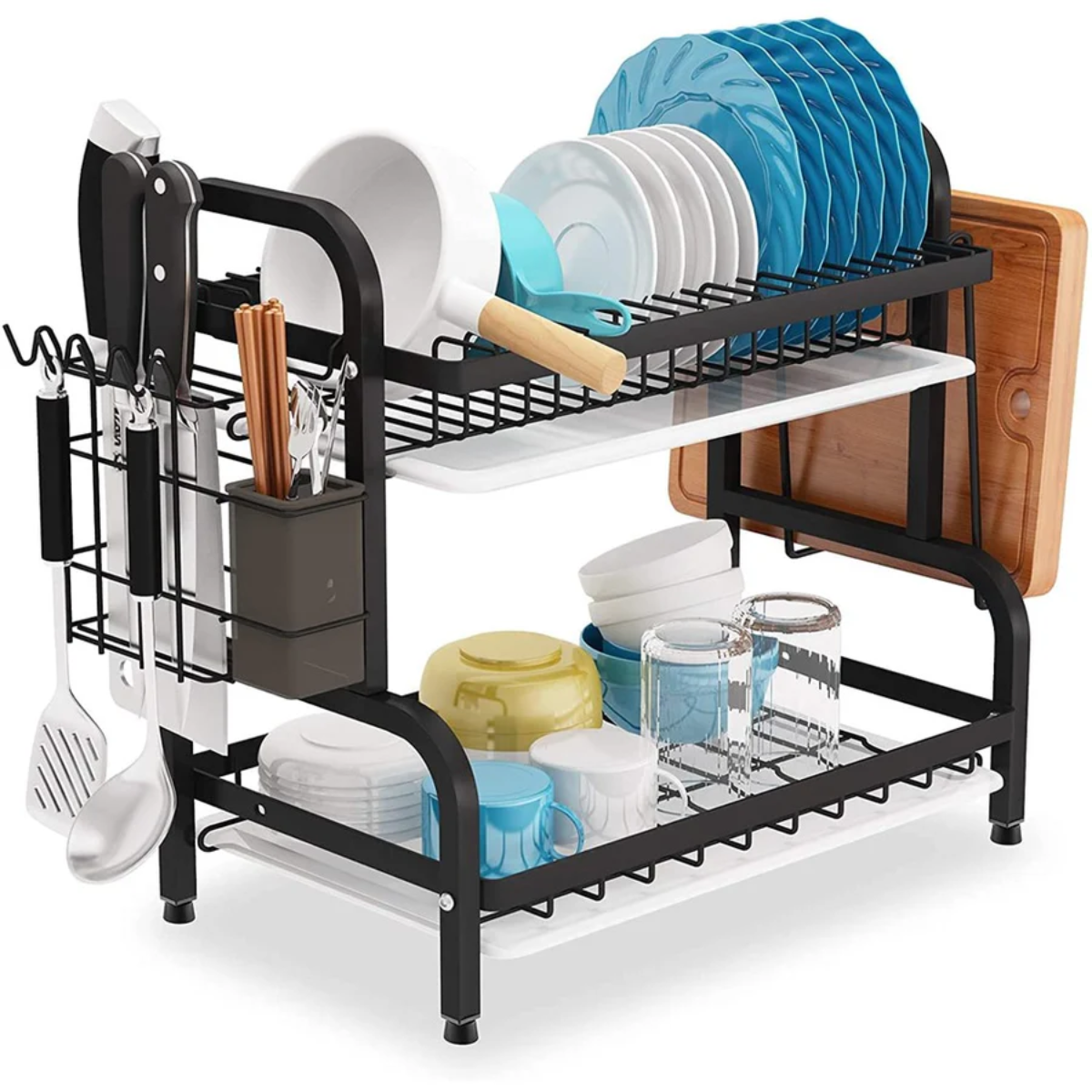 Organiza tu cocina de manera eficiente con el secaplatos cocina escurridor platos cubiertos 2 niveles. este práctico accesorio de encimera está diseñado para optimizar el espacio y facilitar el secado de tus utensilios de cocina.