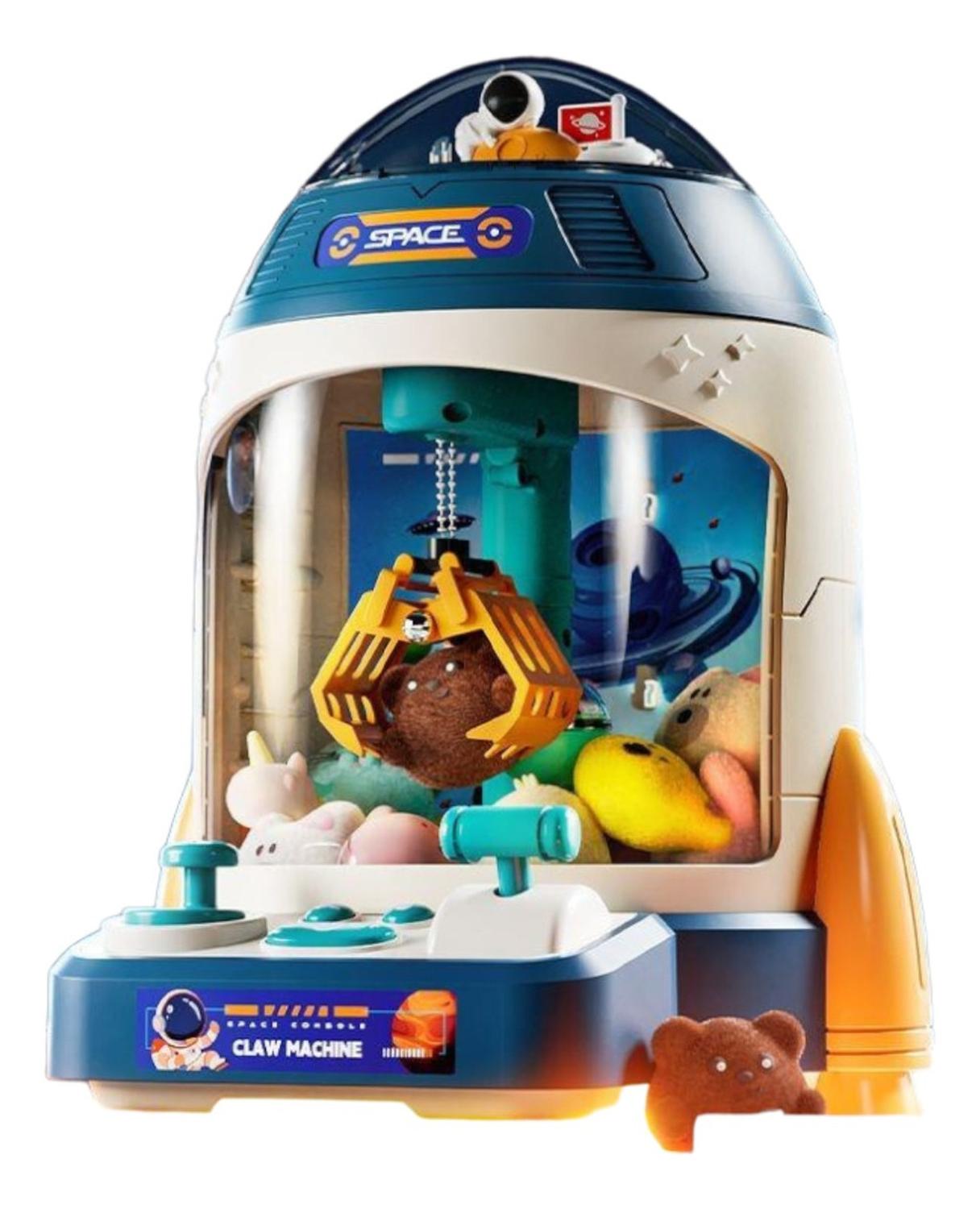 La máquina de peluches claw machine azul es un juguete entretenido con un diseño en forma de nave espacial que fascinará a los niños. incluye peluches y esferas sorpresa para atrapar con la garra, recreando la emoción de las clásicas máquinas de premios. con luces y música, ofrece un ambiente alegre y dinámico, ideal como regalo especial que estimula la creatividad y la diversión en casa.