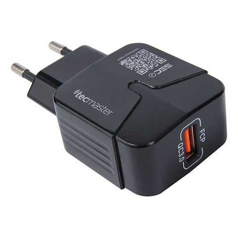Cargador Tecmaster Carga Rapida USB-A 3A Negro