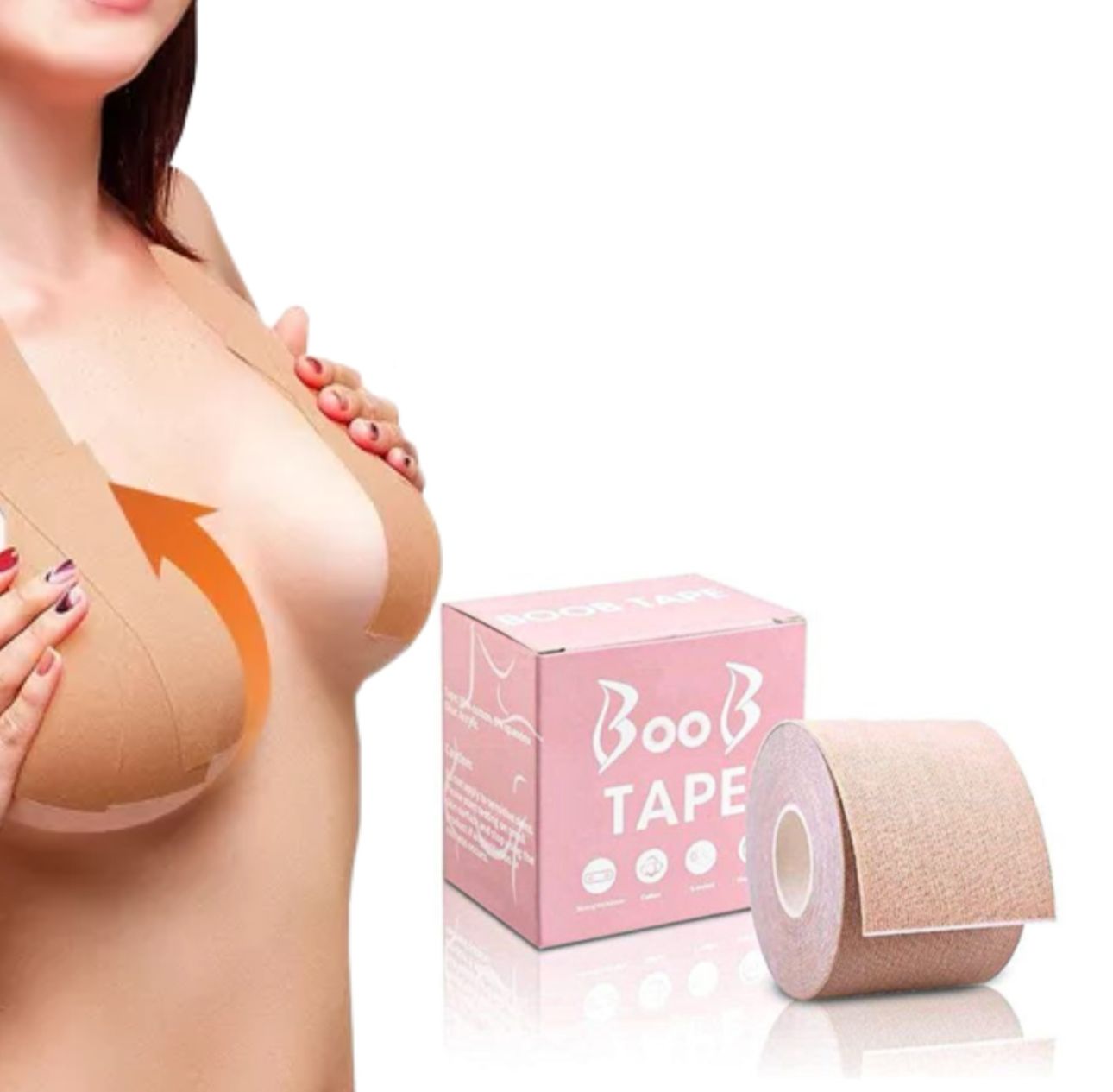 ¿alguna vez has encontrado el atuendo más lindo pero no pudiste encontrar un sostén que funcionara? ¿has comprado un producto que afirmaba darte un levantamiento de senos pero descubriste que no tenía soporte? ¡boob tape es la respuesta! levanta busto de cualquier tamaño, es hipoalergénico. impermeable, perfecto para debajo de los trajes de baño. corta tu propia longitud de cinta para adaptarse a tus necesidades. indoloro al retirar. características: - levanta cualquier tamaño de busto - hipoalergénico - libre de látex - un rollo de 5 metros durará múltiples usos - usa trajes que no podías usar antes porque ahora puedes ir sin sostén. - el desnudo es perfecto debajo de la ropa de color - impermeable, perfecto para debajo de los trajes de baño - corta la longitud de tu propia cinta para que se adapte a tu figura única - no es doloroso de quitar - tejido de algodón elástico - se adapta a tu cuerpo - alta adherencia - no apto para pieles delicadas nuestros boob tape contienen: - algodón - spandex - adhesivo - acrílico modo de uso: 1. corta la cinta al tamaño deseado y aplícala sobre la piel limpia y seca, sin aceites ni cremas. no aplicar si se encuentra irritada, sensible o quemada por el sol 2. hay varias formas de colocar el boob tape, esto depende de la prenda que usarás y de la ocasión, se incluye una imagen de referencia. 3. remuévelo lentamente, boob tape se desprenderá con facilidad si la despegas suavemente y con cuidado. comienza despegándola por un borde lentamente, mientras sostienes la piel atrás de la cinta. esto significa que mientras una mano está desovando la cinta, la otra afirma con fuerza la piel detrás.