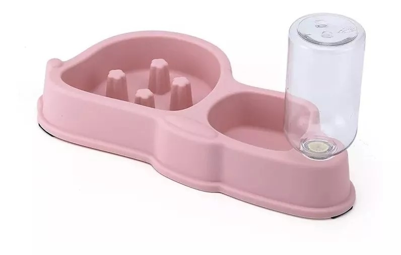 Dispensador de agua + plato antiansiedad (ahogo) todo en uno rosado