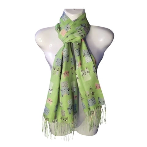 Mh - Bufanda, Pañuelo, Diseño De Gatitos, Primavera/Verano Color Verde | Lider Electrohogar