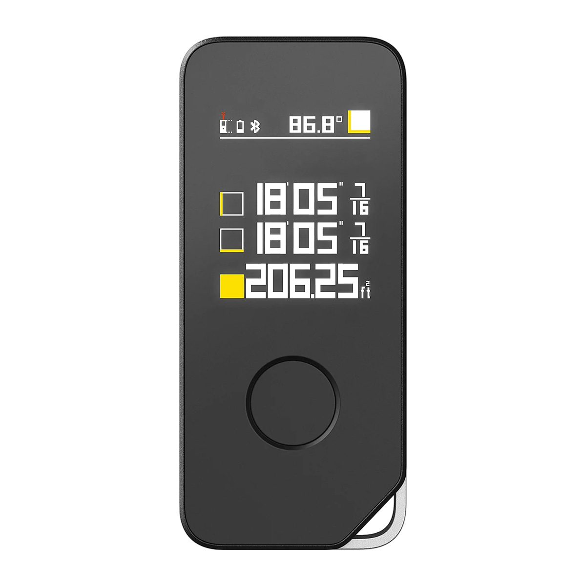 Dimensiones: 99.5 × 44.1 × 23.3 mm peso neto: aprox. 90 g entrada de carga: 5v - 1a tiempo de carga: aprox. 100 min potencia de funcionamiento: 1 w (máx.) tiempo de apagado automático: 180 s tipo de láser: longitud de onda 630-680 nm unidad mínima de visualización: 0.001 m distancia de transmisión bluetooth: aprox. 8 m unidad de medición: m / ft pantalla: pantalla lcd de 1.77 pulgadas precisión de la escala de la regla analógica: +-(4 mm + d*1/10000)