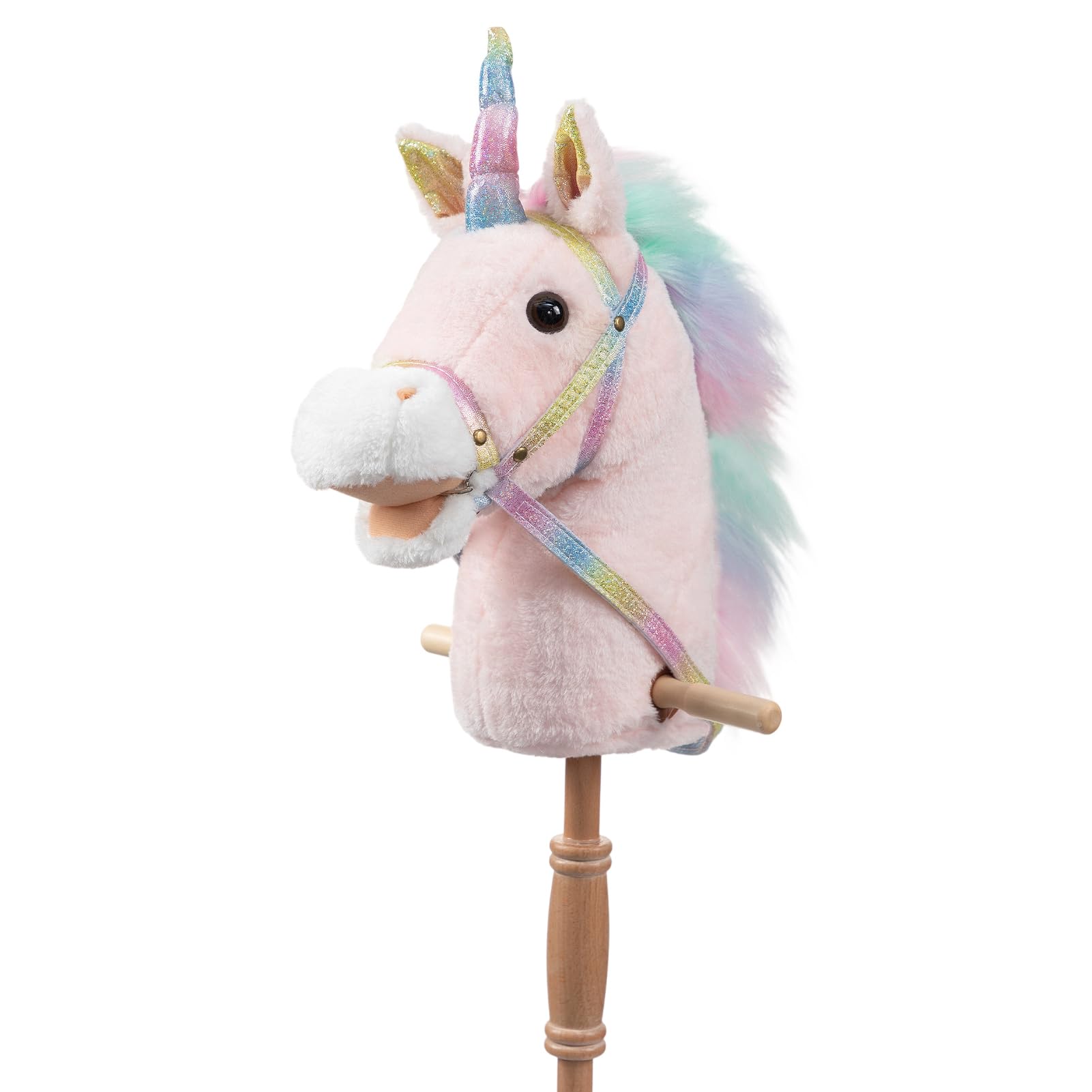 Peluche con forma de unicornio en forma de palo, caballo, hollyhome, relincho y galopando