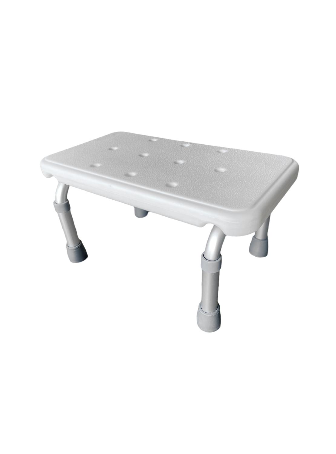 Escabel de un peldaño ideal para subir a camillas, brindar apoyo al sentarse o alcanzar superficies elevadas. su peldaño regulable en altura y su diseño con orificios de drenaje lo hacen apto incluso para uso en la ducha. fabricado en aluminio y plástico resistente, soporta hasta 110 kg, ofreciendo estabilidad y seguridad tanto en entornos domésticos como clínicos. características principales - peldaño con altura regulable: 21–26 cm - orificios de drenaje para uso en ducha - material resistente: aluminio + plástico - diseño estable y seguro - capacidad máxima: 110 kg