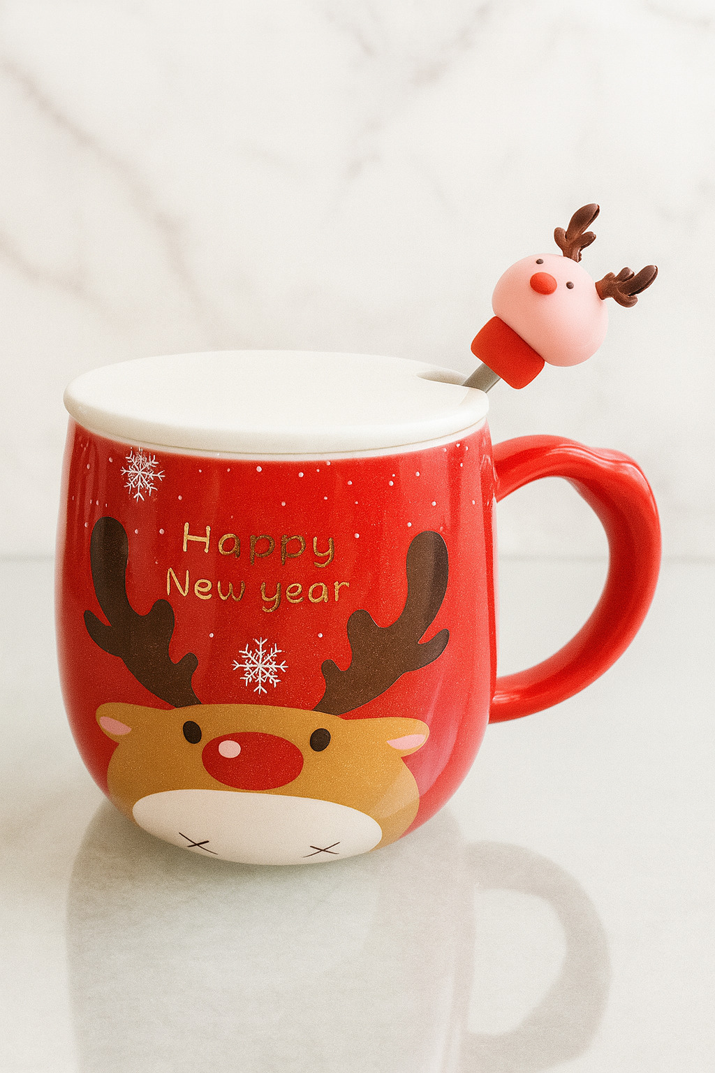 Taza con diseño de reno y tapa