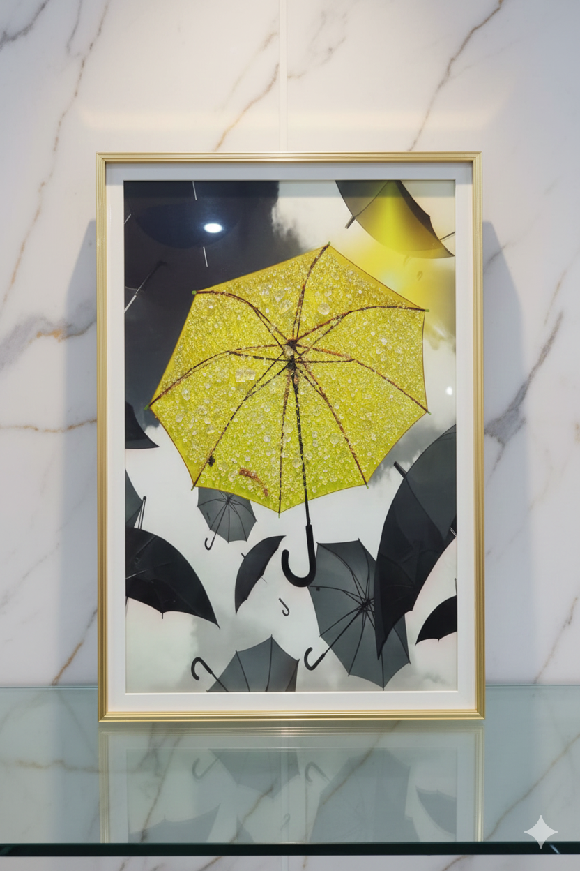 Decostilo - Cuadro Diseño De Paraguas Amarillo Con Cristales 40X60Cm | Lider Electrohogar
